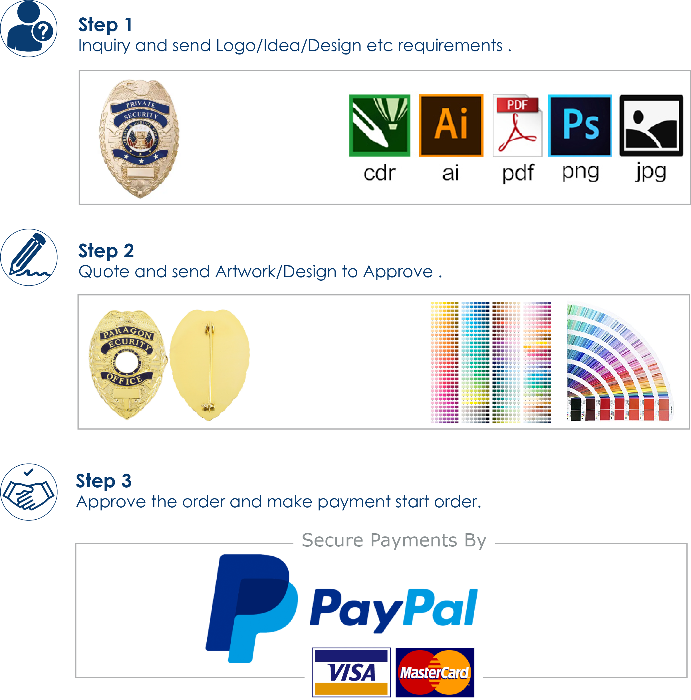 (1) Send your design by AI, CDR, JPEG, PSD or PDF files to us.