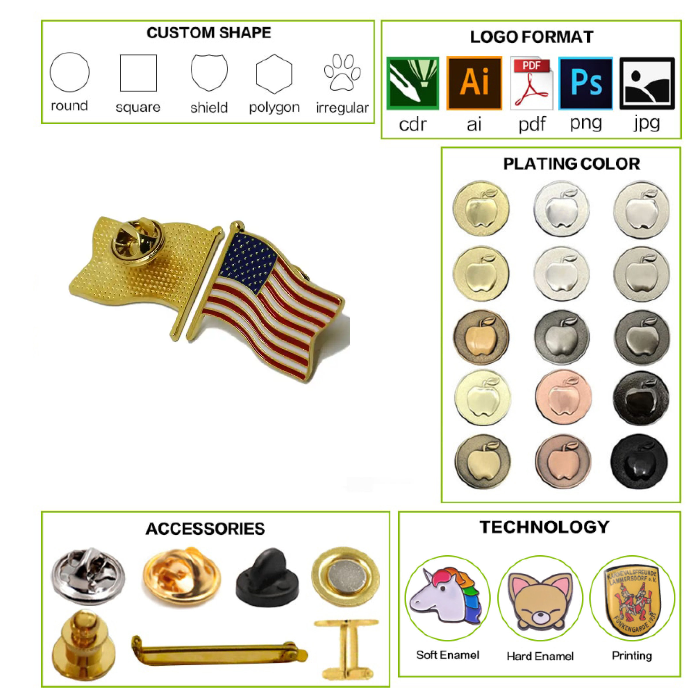| Product Type | Flag PINS, Enamel Pins |